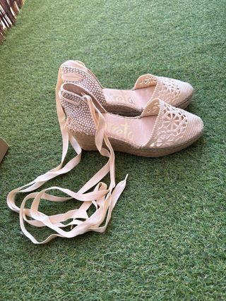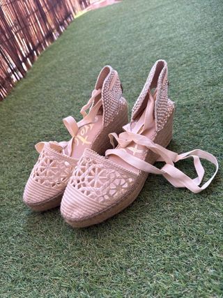 Preciosos zuecos de la marca Women’secret. Son de color beige y tienen un diseño de cuerda trenzada. Ideales para el verano. - Diseño de tiras cruzadas - Suela de esparto Los vendo porque me paso al calzado barefoot. 🙂 Si te quedas más de un artículo, te puedo hacer rebaja