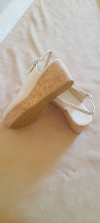 Preciosas cuñas color beige, a estrenar. Ideales para cualquier ocasión. - Son de esparto y lona. - Tienen una altura de tacón cómoda. - El diseño es sencillo y elegante. - Se venden en su caja original.
