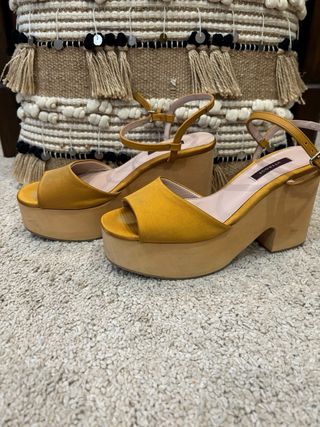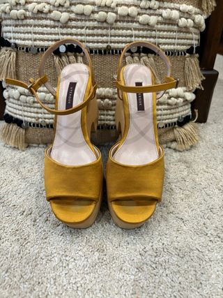 cuñas uterque color mostaza talla 38 altura 11cm tiene una trabillas despegada se puede ver en una foto sin caja sin ticket