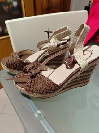 Preciosas cuñas de la tienda Pull&Bear, en color beige. Ideales para cualquier ocasión. - Son de esparto. - Tienen un diseño sencillo y elegante. - Son muy cómodas de llevar.