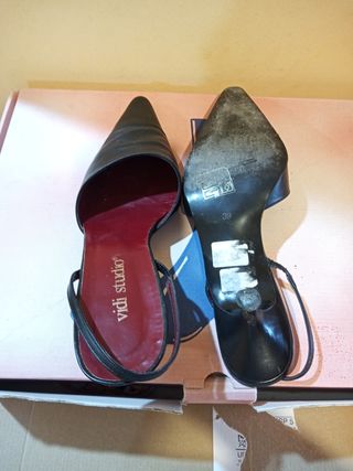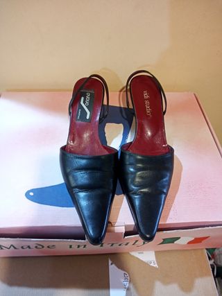 Zapatos n° 39 de piel negros. Yo los he usado y tengo un 38.