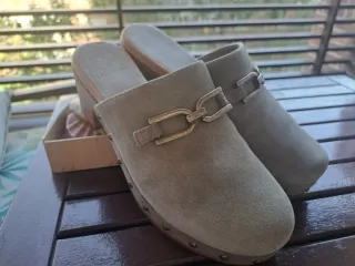 Zuecos cómodos de la marca Blendex. -Materiales premium - ante natural, corcho y EVA de alta densidad. -Comodidad ergonómica - plantilla acolchada que se adapta a cada paso. -Durabilidad consciente - hechos para durar años, no temporadas. PRECIO WEB: 59,90€ lo vendo por 50€ 📌 Política de devoluciones: No acepto devoluciones por errores de talla o por no quedar como se esperaba. Solo se admiten devoluciones si la prenda llega dañada o en un estado diferente al descrito. 📦 Solo envíos por Wallapop. No entregas en mano. Gracias por la comprensión.
