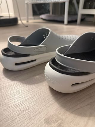 Crocs InMotion U en color gris atmosphere (PVP 74.90€) Recién compradas (2/12/2025) Vendo por equivocación de talla. (Usadas solo una vez) - Diseño personalizable con perforaciones. - Tira trasera ajustable. - Suela con tecnología LiteRide