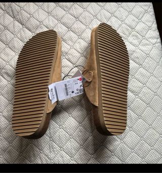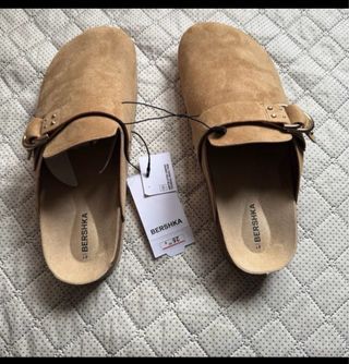 Zuecos de la marca Bershka en color beige y marrón. - Material exterior de ante. - Correa ajustable con hebilla metálica. - Detalle de tachuelas en la correa. - Suela con logo de la marca. todas las tallas