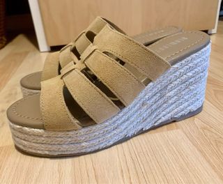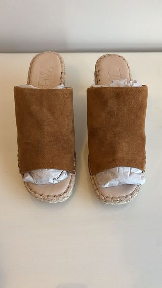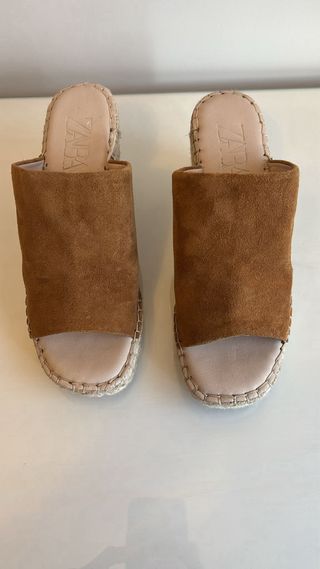 Zuecos de la marca Zara en color marrón. - Diseño abierto. - Material de ante. - Suela de esparto.