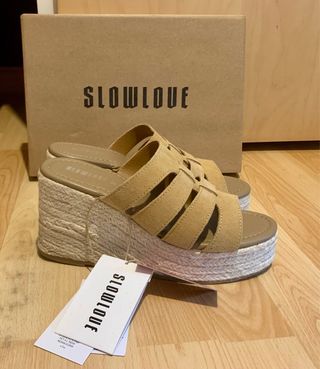 Cuñas de esparto con tiras. Slowlove Talla 37 - Material exterior de ante. - Plataforma forrada de esparto. - Diseño abierto en la pala.