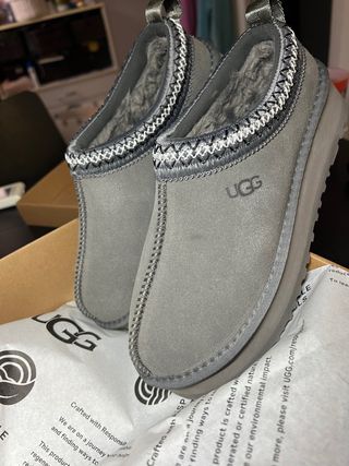 Zuecos UGG con plataforma y forro interior de pelo. - Diseño abierto. - Detalle de pespunte decorativo en el borde. - Suela de plataforma gruesa. Las vendo NUEVAS. No poseo la caja de ahí la diferencia de precio