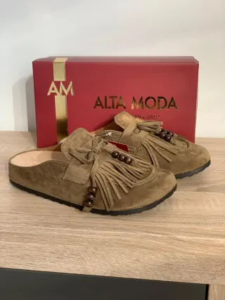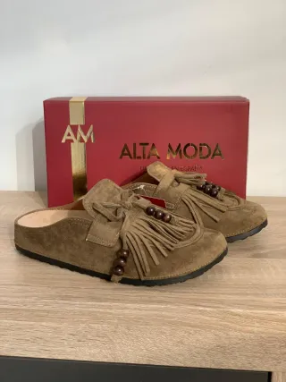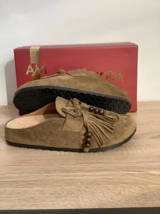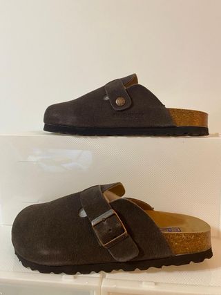 Zuecos cómodos y elegantes. - Material exterior de ante. - Hebilla ajustable. - Suela interior con soporte para el arco.