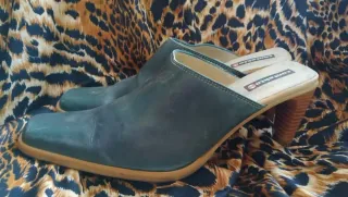 Zuecos de piel con un diseño moderno y cómodo. - Material exterior de piel cuero. - Acabado en tono azul. - tacón efecto madera. - Marca: Contakto 69. Buen estado, como nuevo, solo la zona de abajo, suela marcado de andar, los tacones la tapa está bien No envió, entrega y cobro en mano.