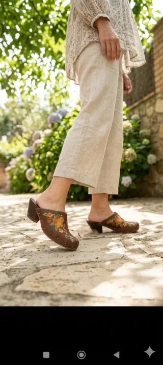 Zuecos de ante con un bonito bordado floral. - Material exterior de ante. - Detalle de bordado multicolor en la parte delantera. - Tacón de madera.