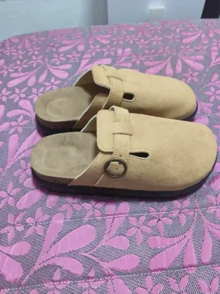 Zuecos de ante de piel ,nuevos ,interior de borreguito. - Detalle de tachuelas en la suela. - Suela de plataforma.