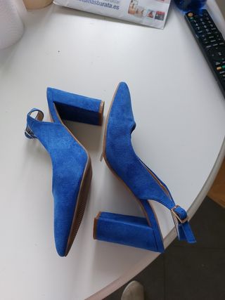 Proceden de cierre de negocio. Fabricados en España, en piel de ante, en un tono malva suave muy bonito. Tacón de 3 cms. Largo 26,5 cms aprox sin llegar a la punta. Incluye funda de tela con logo para guardarlos y un bolígrafo también con logo. PVP en tienda era de 123 €. Solo envío por Wallapop, precio ajustado, no acepto ofertas.