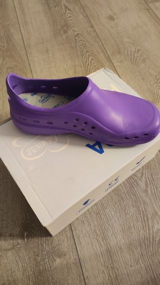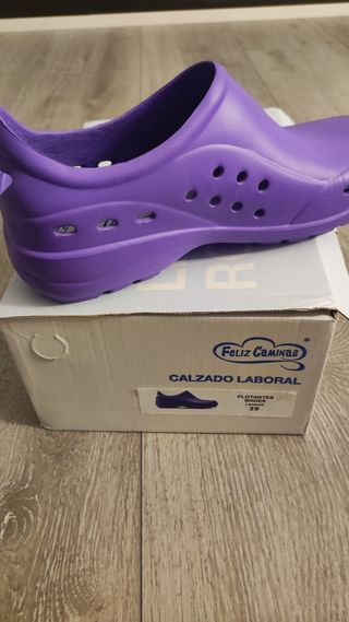 se venden zuecos morados a estrenar de feliz caminar n°39 no pesan nada
