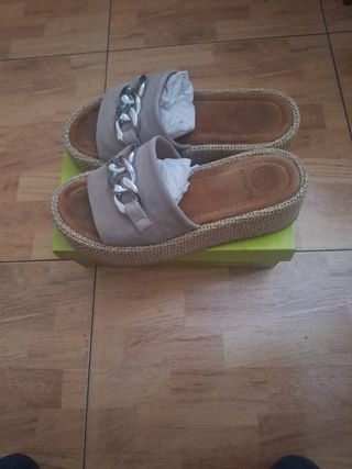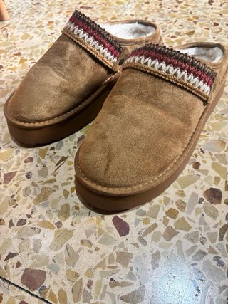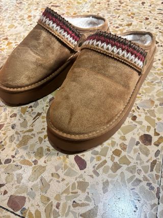 Talla 41 de tendencia de este año. Nuevas. Compradas hace un mes, pero no las puedo usar porque yo uso plantilla y al final no me valen. Muy cómodas por el pelito de dentro. Son tipo boho. El detalle tejido decorativo les da un estilo bohemio o rústico. Este tipo de calzado está en tendencia por combinar comodidad y estilo casual.