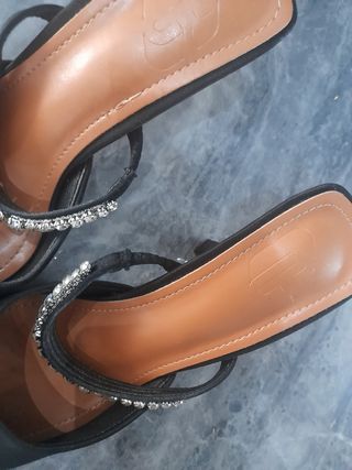 Mule negros con tira joya. Plantilla muy cómoda. Usados sólo para una sesión de fotos.