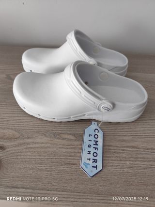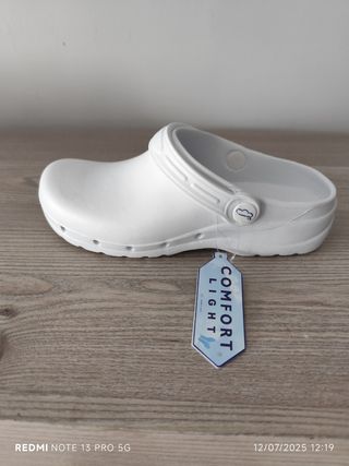Vendo un par de zuecos blancos de trabajo, marca Comfort Light. Son nuevos y están impecables. - Modelo Comfort Light. - Material ligero y cómodo. - Ideales para uso profesional.