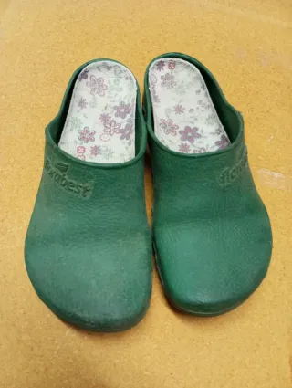 zuecos técnicos feliz caminar N°35-36 color verde en perfecto estado