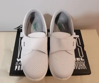 Vendo un par de zapatos Turri blancos. Son super cómodos. Perfectos para trbajo. Muy poco usados, están en perfecto estado. - Diseño ergonómico. - Perforados. - Cierre de velcro.
