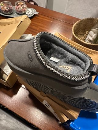 Zuecos Ugg Taz en color gris. Perfectos para estar cómodo en casa o para salir. - Diseño tipo zueco. - Detalle de ribete trenzado. - Suela gruesa y cómoda.