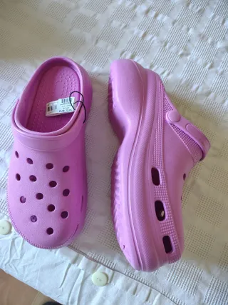Zuecos tipo Crocs de la marca Parfois en color lila, sin estrenar con la etiqueta. Son frescos, cómodos y perfectos para el día a día. - Sin estrenar. - Talla 41 pero calzan pequeño, mejor pensar en una talla 39-40.