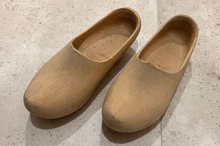 Par de zuecos de madera, perfectos para decoración o uso. Hecho a mano en Asturias. - Material: Madera natural. - Diseño tradicional.