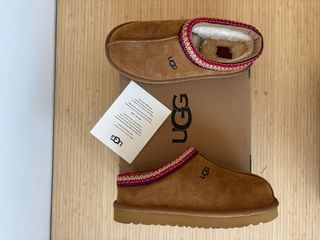 Pantuflas UGG Tazz en color marrón, talla 38. Perfectas para estar cómodo en casa. - Diseño tipo mule. - Ribete decorativo en la parte superior. - Logo de la marca bordado.