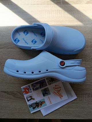 Vendo zuecos de trabajo de la marca Dian. Son de color azul y están sin estrenar. Los vendo porque me quedan pequeños y se me pasó la devolución. - Cómodos y ligeros. - Perfectos para el trabajo. - Ideales para sanitarios. - Material resistente y fácil de limpiar. Están a mitad del precio de compra.
