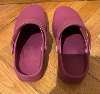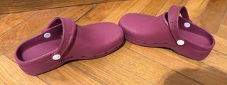 Zuecos sanitarios flotantes de mujer Talla 37, pero seria una 36 porque da poca talla Color burdeos Usados dos veces Marca feliz caminar