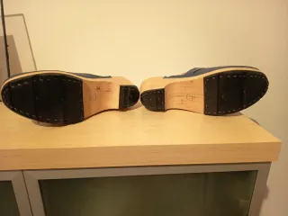 Zuecos de fabricación artesanal. - Diseño clásico y cómodo. - Suela de madera. - Parte superior de cuero.