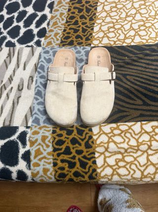 Zuecos de Zara Home en color beige. - Diseño con hebilla ajustable. - Material de ante.