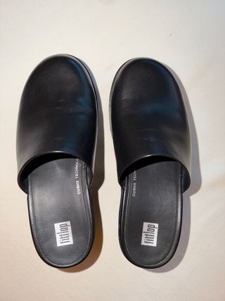 Zuecos de cuero negros de la marca Fitflop. - Diseño tipo zueco. - Material exterior de cuero. - Suela con tecnología CUSHX. - Calzan pequeños