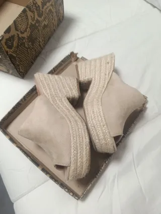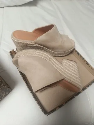 Zuecos beige plataforma esparto , casi nuevo