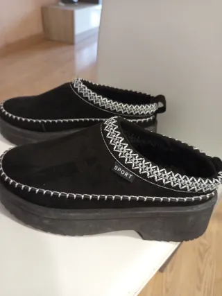 Zuecos Bershka negros plataforma tacón