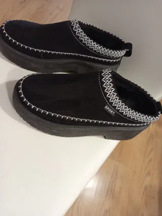 Zuecos cómodos y con estilo. - Exterior de ante. - Forro interior de pelo sintético. - Detalle de hebilla metálica. - Suela gruesa y resistente.