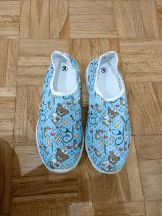 Zapatos cómodos con un divertido estampado de ositos enfermeros y elementos médicos. - Estampado de ositos y material médico. - Talla 35.