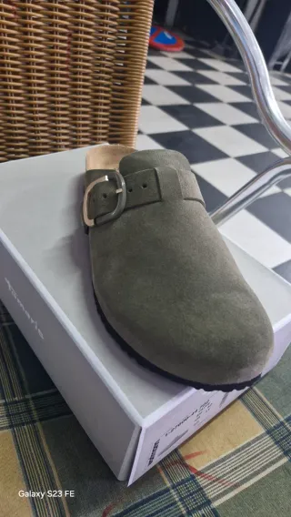Zuecos de la marca Tamaris en color verde oliva. Perfectos para un estilo casual. - Diseño con hebilla. - Material de ante.