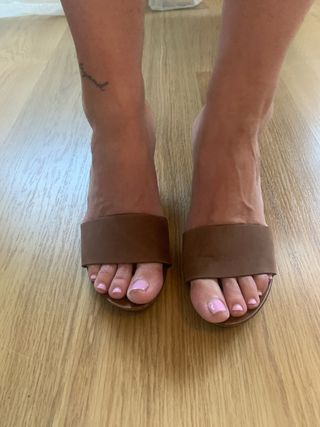 Preciosos zuecos de madera, ideales para el verano. Son de color marrón y tienen un tacón pequeño. Están en muy buen estado. - Hechos de madera. - Diseño de zueco clásico. - Tacón bajo.