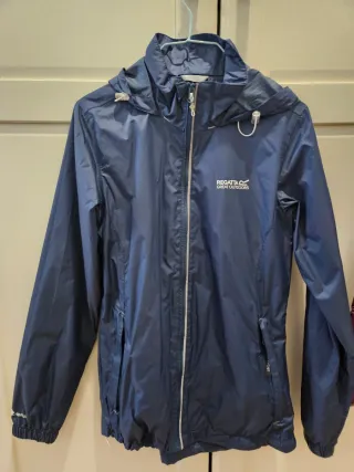 Chubasquero ligero y práctico para mujer. Talla S pero talla grande. Sin usar, lo vendo porque me queda grande - Capucha ajustable. - Cierre de cremallera. - Bolsillos laterales. - Puños elástica