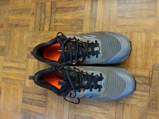 Zapatillas de trail running Saucony Peregrine 13 GTX en color gris con detalles naranjas. Perfectas para tus aventuras al aire libre. - Membrana GORE-TEX para impermeabilidad. - Suela con buen agarre para terrenos difíciles. - Diseño deportivo y funcional. Muy buen estado, solo han sido usas 1 vez en barro.