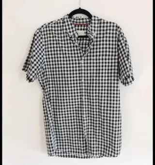 Camisa de cuadros para hombre con diseño clásico. - Cuadros en blanco y negro. - Cuello tipo botón. - Bolsillo en el pecho.