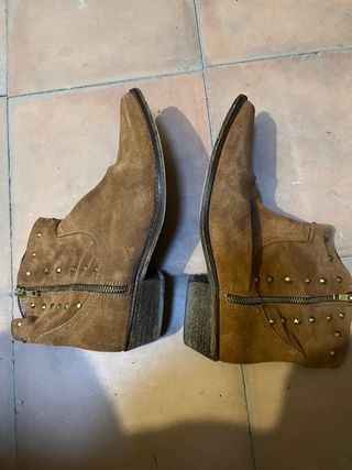 Botines estilo cowboy en ante con tachuelas decorativas. - Detalle de tachuelas metálicas. - Tacón cuadrado.