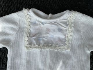 Preciosa camiseta de bebé de manga larga, ideal para el día a día. - Color blanco. - Cuello redondo con detalle de encaje. - Estampado floral en la pechera. - Talla 6 meses. - Marca Calamaro.