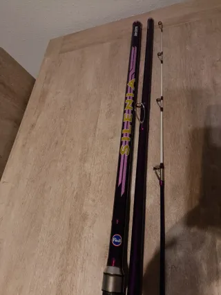 Caña de pescar Akami Silenia de color púrpura con detalles en amarillo y rosa,anillas Fuji. Solo se ha usado para probarla,tengo dos iguales,las dos nuevas. - Logo de Fuji. - Diseño elegante.