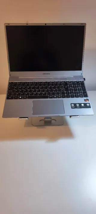 Soporte de aluminio para portátil, diseñado para ser plegable y fácil de transportar. - Diseño plegable. - Almohadillas antideslizantes.