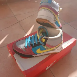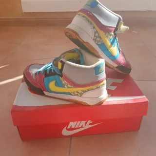 Botas altas de la marca Nike con un diseño colorido y llamativo. - Combinación de colores vibrantes. - Cierre de cordones y velcro. - Detalle de logo en la lengüeta.