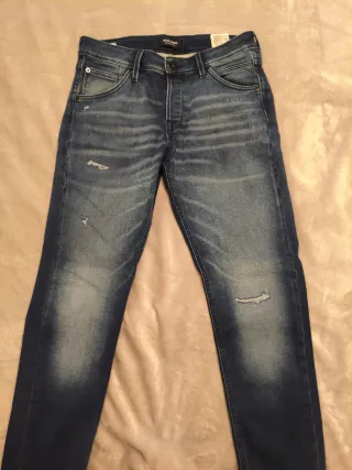 Se vende jogg jeans Jack&Jones de corte moderno con un lavado desgastado que les da un toque urbano ,muy cómodo y elástico . - Diseño con rotos y zonas desgastadas. - Cintura con cierre de botón y cremallera. - Bolsillos delanteros y traseros. - Tejido jogg muy cómodo . - nuevo nunca puesto .