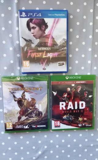 Se vende lote de videojuegos para PlayStation 4 y Xbox One. - inFAMOUS First Light (PS4) - Titan Quest (Xbox One).. nuevo precintado - RAID: World War II (Xbox One) En perfecto estado....18€ todos... No envío