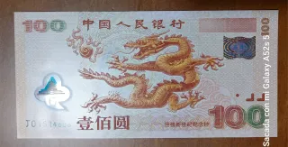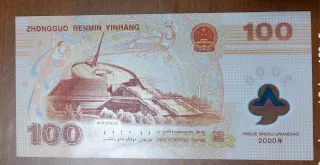 Billete 100 Yuan Polímero China 2000 J