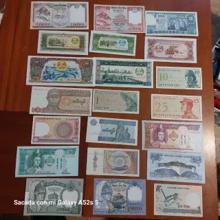 Colección de 50 billetes de diferentes países, todos sin circular. - Variedad de diseños y denominaciones. - Ideal para coleccionistas.