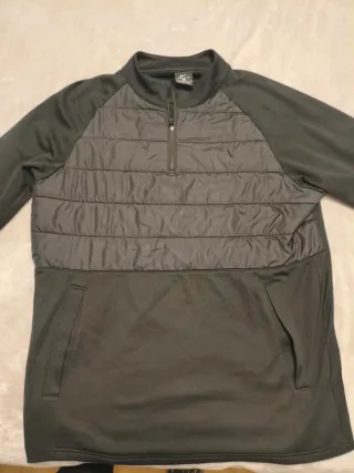 Sudadera deportiva Nike Dri-Fit para hombre talla M . - Diseño con panel frontal acolchado. - Cremallera parcial en el cuello. - Bolsillos laterales. - Mangas raglán. - Interior polar .